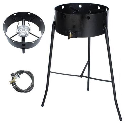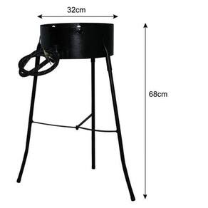 Especificações: Altura com os pés: 62 cm Diâmetro da circunferência do fogareiro: 32cm 1 boca com 6 caulins bicos espalhadores de chama Mangueira: 90 cm Registro borboleta botijoes.