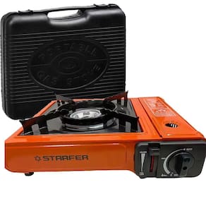 O fogão Starfer é ideal para você que procura rapidez e praticidade na hora de acampar e preparar suas refeições. Seu design revestido de aço inoxidável garante qualidade imprescindível. Com uma boca, acendimento automático, incluindo uma grelha móvel em aço inoxidável com protetor, chama regulável e compartimento com trava para instalação do cartucho. Indicado para viagens, acampamentos e pequenos eventos, utilizado em ambientes abertos.CARACTERÍSTICAS TÉCNICAS:Material: Aço inoxidávelMedidas: 34cm (comprimento) x 8cm (altura) x 26cm (largura)Fonte de gás: Gás butanoQuantidade de queimadores: 1Controle de chamas: SimSistema de ignição: AutomáticaAcompanha maleta: SimMarca: StarferRef.: 6099904