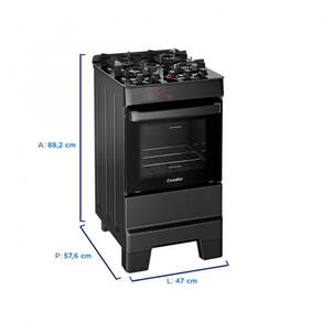Queimadores: Com trempes duplas em aço esmaltado, ele é altamente durável e resistente ao desgaste do tempo, além de proporcionar maior estabilidade ao acomodar as panelas. A distribuição de potência dos queimadores é otimizada para atender a diferentes necessidades culinárias: dois queimadores para uso familiar, com potência de 2,0 kW cada e dois queimadores pequenos com potência de 1,7 kW.