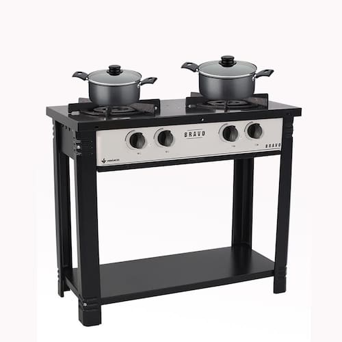 - Queimadores de alto rendimento, em ferro fundido, possuindo potência de 4.090kcal no modelo chama tripla frontal e 3.659kcal no modelo chama dupla;