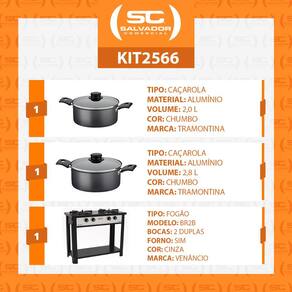 Fogão Industrial 2 Bocas com Forno Bravo Cinza Venâncio + 2 Caçarolas Tramontina Turim