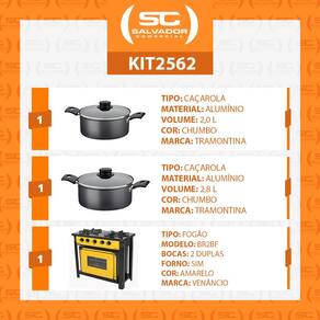 Fogão Industrial 2 Bocas com Forno Bravo Amarelo Venâncio + 2 Caçarolas Tramontina Turim