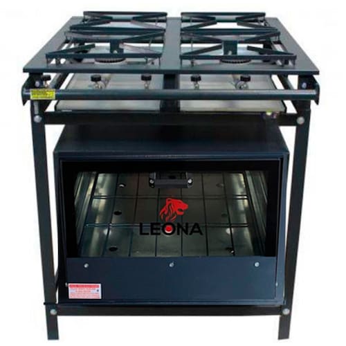 Fogão Industrial de Alta Pressão À Gás GLP (BOTIJÃO)Linha Standar Perfil 5Grelhas em Aço 30cmx30cm4 Queimadores Simples 100mmBandeja coletora de resíduoPintura preta texturizada epóxi de alta resistênciaChapa em aço carbonoForno de 92L Tampa de VidroMedidas do Fogão Montado:Altura : 80cmLargura : 73cmProfundidade : 80cm Marca: Não Informado