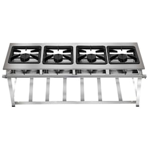 Fogão Industrial de Alta Pressão À Gás GLP (BOTIJÃO)Linha Tradicional Perfil 7Grelhas em ferro fundido 30cmx30cm4 Queimadores Simples 130mmBandeja coletora de resíduoChapa em aço Inox 430Medidas do Fogão Montado:Altura : 80cmLargura : 147cmProfundidade : 52cm Marca: Não Informado