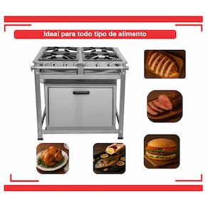Fogão Industrial de Baixa Pressão À Gás GLP (BOTIJÃO)Linha Standard Perfil 5Grelhas em ferro fundido 30cmx30cm2 Queimadores Triplos 140mm 2 Simples 100mmBandeja coletora de resíduoChapa em aço Inox 430Forno de 92L Tampa em Aço InoxMedidas do Fogão Montado:Altura : 80cmLargura : 73cmProfundidade : 80cm Marca: Não Informado Ean: 7892242053813