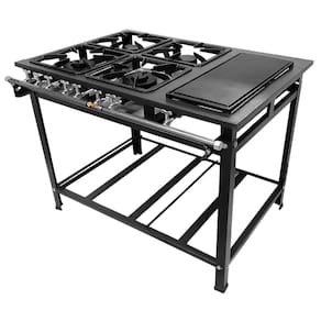 Conheça melhor o Fogão Industrial P5 4 Bocas 2QS 2QD Baixa Pressão com Chapa Bifeteira de Piso Metalfour