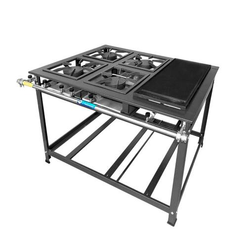 Conta com quatro queimadores simples de alta pressão em ferro fundido, que proporcionam chama potente e aquecimento rápido, tornando o preparo de alimentos muito mais ágil e uniforme.
