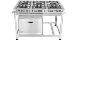 Fogão Industrial 6 Bocas 30x30 P7 em Aço Inox com Forno03 Queimadores Duplos 170mm03 Queimadores Simples 100mmGrelhas em Ferro Fundido Queimadores em Ferro Fundido Estrutura Confeccionada em Aço Inox 430Forno de 92L Tampa em Aço InoxPerfil 7 (7cm Entre os Queimadores) Garantia : 06 Meses Contra Defeitos de Fabricação.Medidas :Altura : 80cmLargura : 115cmProfundidade : 83cm Marca: Não Informado