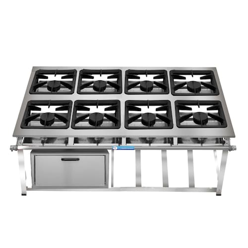 Fogão Industrial de Baixa Pressão À Gás GLP (BOTIJÃO)Linha Tradicional Perfil 7Grelhas em ferro fundido 30cmx30cm4 Queimadores Simples 130mmBandeja coletora de resíduoChapa em aço Inox 430Forno de 92L Tampa em Aço InoxMedidas do Fogão Montado:Altura : 80cmLargura : 151cmProfundidade : 88cmMedidas Internas do Forno Altura : 31cmLargura : 48cmProfundidade : 59cm Marca: Não Informado