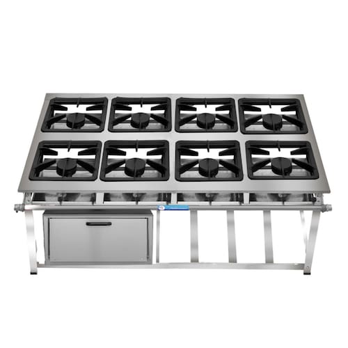Fogão Industrial de Baixa Pressão À Gás GLP (BOTIJÃO)Linha Tradicional Perfil 7Grelhas em ferro fundido 30cmx30cm4 Queimadores Simples 130mmBandeja coletora de resíduoChapa em aço Inox 430Forno de 92L Tampa em Aço InoxMedidas do Fogão Montado:Altura : 80cmLargura : 151cmProfundidade : 88cmMedidas Internas do Forno Altura : 31cmLargura : 48cmProfundidade : 59cm Marca: Não Informado