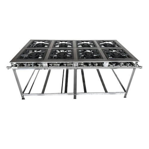 Fogão Industrial de Baixa Pressão À Gás GLP (BOTIJÃO)Linha Tradicional Perfil 7Grelhas em ferro fundido 30cmx30cm8 Queimadores Duplos 170mmBandeja coletora de resíduoChapa em aço Inox 430Medidas do Fogão Montado:Altura : 80cmLargura : 151cmProfundidade : 83cm Marca: Não Informado
