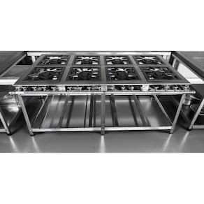 Fogão Industrial de Baixa Pressão À Gás GLP (BOTIJÃO)Linha Tradicional Perfil 7Grelhas em ferro fundido 30cmx30cm8 Queimadores Duplos 170mmBandeja coletora de resíduoChapa em aço Inox 430Medidas do Fogão Montado:Altura : 80cmLargura : 151cmProfundidade : 83cm Marca: Não Informado Ean: 7890161242653