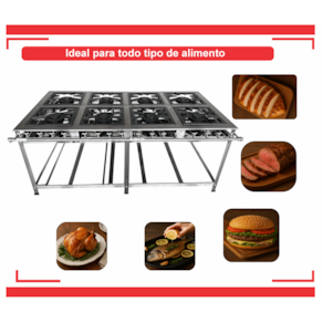 Fogão Industrial 8 Bocas Inox CHAMA TRIPLA(8) Leona