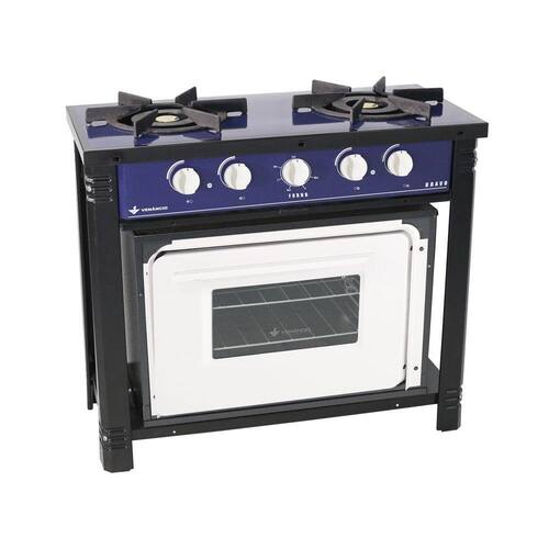 Fogão Industrial Azul com Forno Branco 2 Bocas Duplas Bravo BR2BF - Venâncio