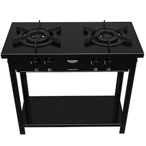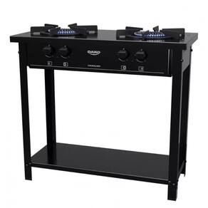 Características: Queimadores potentes de dupla e dupla chama com duplo controle Grades em ferro fundido com 6 pontos de apoio 100 com revestimento esmaltado Grades extra largas e robustas Dupla Chama nos 2 queimadores Pés removíveis Mesa em aço com revestimento LIMPAFÁCIL Ignição Manual Suporte para armazenamento