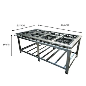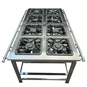 O Fogão Industrial de Centro 8 Bocas 4 Duplas Cefaz Linha Gold Baixa Pressão Inox C-I430-CFZG-167 é um equipamento robusto e eficiente, ideal para estabelecimentos como restaurantes, lanchonetes, escolas e qualquer tipo de comércio que necessita de um produto de alta qualidade. Este fogão industrial auxilia e agiliza o serviço na cozinha, proporcionando um visual bonito e uma performance de alto nível. Com uma mesa estampada que evita o acúmulo de resíduos, ele garante máxima higiene no preparo dos alimentos. Equipado com um tubo de alimentação de gás de 1 1/4 polegada, o fogão oferece uma excelente vazão de gás para os queimadores. As grelhas de 40x40 cm, feitas de ferro fundido, são projetadas para suportar panelas e tachos pesados, permitindo um cozimento rápido e eficiente, mesmo em longas horas de funcionamento e altas temperaturas. A estrutura do fogão, produzida em aço inox 430 com espessura de 1,0 mm, é totalmente desmontável, facilitando o transporte e o armazenamento. Este fogão é a escolha perfeita para quem busca eficiência, durabilidade e qualidade na cozinha, proporcionando uma experiência de uso superior e garantindo a satisfação dos clientes.