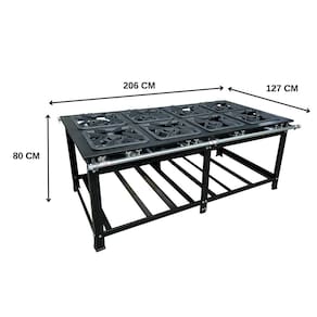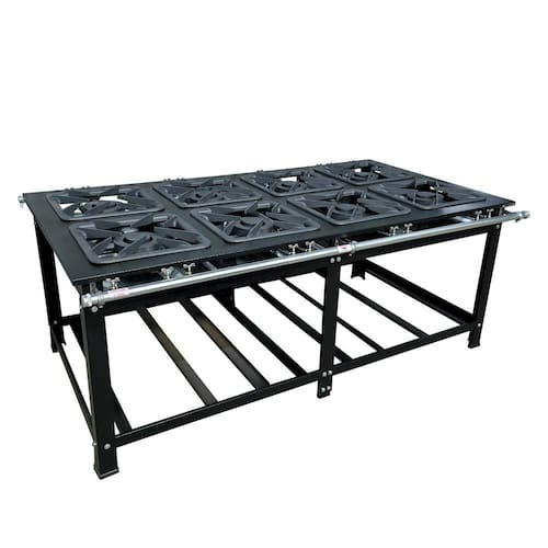 O Fogão Industrial de Centro 8 Bocas Duplas Cefaz Linha Gold Baixa Pressão Aço Carbono C-CFZG-159 é um equipamento robusto e eficiente, ideal para estabelecimentos como restaurantes, lanchonetes, escolas e qualquer tipo de comércio que necessita de um produto de alta qualidade. Este fogão industrial auxilia e agiliza o serviço na cozinha, proporcionando um visual bonito e uma performance de alto nível. Com uma mesa estampada que evita o acúmulo de resíduos, ele garante máxima higiene no preparo dos alimentos. Equipado com um tubo de alimentação de gás de 1 1/4 polegada, o fogão oferece uma excelente vazão de gás para os queimadores. As grelhas de 40x40 cm, feitas de ferro fundido, são projetadas para suportar panelas e tachos pesados, permitindo um cozimento rápido e eficiente, mesmo em longas horas de funcionamento e altas temperaturas. A estrutura do fogão, produzida em aço carbono pintado com espessura de 1,2 mm, é totalmente desmontável, facilitando o transporte e o armazenamento. Este fogão é a escolha perfeita para quem busca eficiência, durabilidade e qualidade na cozinha, proporcionando uma experiência de uso superior e garantindo a satisfação dos clientes.