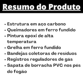 Material do Queimador: Ferro Fundido à alta temperatura
