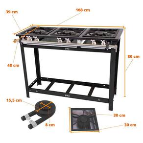 Fogão Industrial Extra Gás Baixa Pressão 3 Bocas Duplas com Pé e Espera para Forno E3D3PE - Venâncio