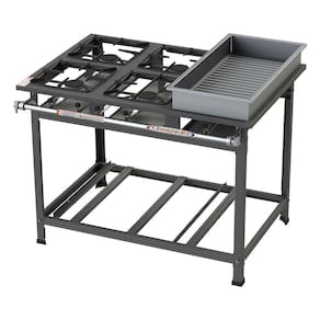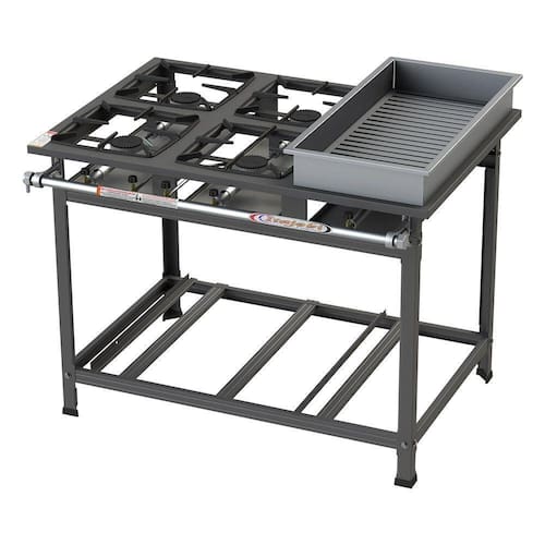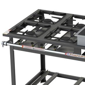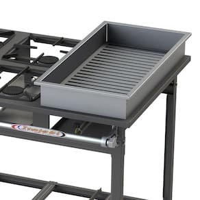 As grelhas são confeccionadas em ferro fundido no tamanho 30x30. O produto apresenta tubo coletor de gás pintado e bandeja coletora de resíduos.