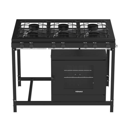 Ficha Técnica: Tipo: Fogão Industrial NFFI 630 Alimentação: Gás GLP Baixa Pressão Botões: Removíveis Número de Queimadores: 6 Queimadores de 120mm Acendimento: Manual Entrada de Gás: Uma entrada (lado direito visto de frente) Material das Trempes: Aço Esmaltado Dimensões das Trempes: 30 x 60 Cm Material dos Queimadores e Espalha Chapa: Ferro Fundido, pintados em preto Estrutura do Fogão: Aço Revestido com Pintura Eletrostática Perfil da Mesa: Em "U" de 60 mm Material da Mesa: Aço Revestido com Pintura Eletrostática na Cor Preta Bandeja Coletora de Resíduos: Sim Material da Corpo: Aço Revestido com Pintura Eletrostática na Cor Preta Forno: Sim Prateleira no Forno: Uma Prateleira Regulável Revestimento Interno do Forno: Easy Clean Isolamento do Forno: Lã de Vidro Termômetro do Forno: Não Porta do Forno: Aço com Visor Puxador da Porta: Aço com sistema de Tranca Dimensões Internas do Forno(LxPxA): 500x468x340(mm)* Volume do Forno: 77L* Potência do Queimador de Mesa:: 3,00kW (queim. 120mm) 5,50kW (queim. 150mm) Potência do Queimador do Forno: 4,50 kW Garantia: 1 Ano Contra Defeito de Fabricação Marca: Venax