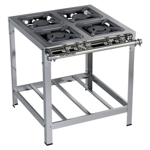 Fogão Industrial Stori Premium 4 Bocas 30x30 M14 Aço Inox 430 Metalmaq Fogão Baixa Pressão Fogão Industrial Stori Premium 4 Bocas Baixa Pressão 30x30 P6,5 M14 Metalmaq. Ideal para restaurantes, cozinhas indústriais e similares. Quadro monobloco com as bocas estampadas em uma só chapa, evitando soldas e acumulo de resíduos. Registro regulador de gás, confeccionado em latão duro niquelado e cromado. Tubo distribuidor de gás, confeccionado em liga especial de alumínio, durabilidade polido de 1. Queimadores e grelhas fundidos em alta temperatura, atingindo alto padrão de dureza. ATENÇÃO: Fogão entregue desmontado. QUEIMADORES: 2 simples e 2 Duplos. PESO: 32,70kg. DIMENSÕES(CxAxL): 146,6x81,5x50,8cm. Fogão Industrial Stori Premium 4 Bocas Baixa Pressão 30x30 P6,5 M14 Metalmaq é na Atau. Tamanho - 4 Bocas Modelo - 30x30 Sem Forno e Sem Chapa Marca - Metalmaq Modelo - M14 Frente - 146,6cm Altura - 81,5cm Profundidade - 50,8cm Peso - 32,70kg