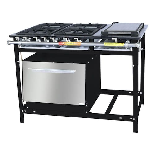 O fogão industrial 4 bocas com chapa e forno é um produto completo, ideal para quem precisa equipar o seu negócio com um produto de alto desempenho e eficiência. Com esse fogão profissional você poderá preparar diversos alimentos cozidos, assados e grelhados, já que ele possui uma forno e uma chapa acoplados em sua estrutura, proporcionando máximo desempenho ao equipamento. Seu corpo e mesa são confeccionados em chapa de aço carbono com pintura eletrostática a pó e base fosfatizada, proporcionando muito mais durabilidade ao fogão a gás. Além disso, suas grelhas 30x30 e seus queimadores são fabricados em ferro fundido para maior resistência.