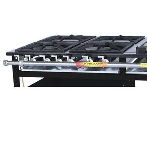 Conta com fácil regulagem de entrada de oxigênio, tubo distribuidor de 3/4" cromado e tampão e entrada de gás reversível, registro cromado de 1/4", além de ser totalmente desmontável, facilitando seu transporte e armazenamento. O forno que acompanha este fogão industrial a gás possui proteção móvel do queimador esmaltado a fogo e isolamento térmico em lã de rocha, evitando que o ambiente fique super aquecido durante o uso. Conta com controle de chama no tubo distribuidor do fogão e três níveis de graduação de altura para grelha, dessa forma você poderá ajustá-la conforme a sua necessidade de uso.