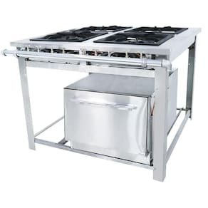 O fogão industrial 4 bocas a gásGLP com forno Maxi foi desenvolvido para estabelecimentos que necessitam de um equipamento robusto e de alta performance para a sua cozinha profissional. Com ele você poderá preparar diversos tipos de pratos cozidos ou assados, já que este fogão profissional possui um forno acoplado em sua estrutura. Você poderá utilizar este equipamento em bares, restaurantes, lanchonetes, padarias, espaços de festa e muito mais. Sua estrutura é confeccionada inteiramente em aço inoxidável escovado, proporcionando muito mais durabilidade ao produto. Conta com queimadores duplos com excelente rendimento, sendo 5.586 kcal/h de potência e tubo distribuidor de 2" com acabamento cromado, possuindo tampão e entrada de gás reversível.É totalmente desmontável, facilitando seu transporte e armazenamento. Além disso, é de fácil limpeza e manutenção, já que seus queimadores são totalmente removíveis. O forno que acompanha este fogão 4 bocas a gás possui estrutura externa em aço inox escovado e sua parte interna esmaltada a fogo. Também possui isolamento térmico em lã de rocha, para que o ambiente não fique super aquecido e controle de chama no varão do fogão. Acompanha uma grelha para assar os alimentos.