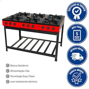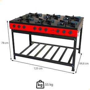- Equipado com queimadores de alto rendimento, grelhas em ferro fundido e estrutura robusta, é a escolha certa para quem exige força, durabilidade e presença no dia a dia da cozinha .