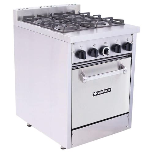 FOGÃO INDUSTRIAL VENÂNCIO DE INOX COM 4 BOCAS FORNO DON BIDONE