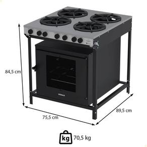 - Com 4 bocas potentes e mesa em inox, ele une robustez, fácil limpeza e visual moderno.