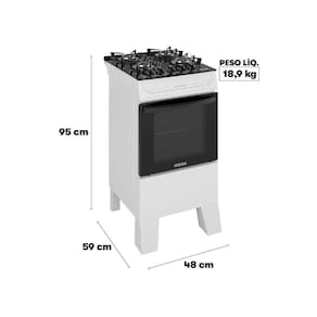 As grades individuais garantem maior estabilidade para panelas de vários tamanhos, e o acendimento automático traz mais rapidez e comodidade no preparo das refeições. O forno de 48 litros é ideal para assar, gratinar ou aquecer alimentos, contando com visor panorâmico para acompanhar o preparo sem precisar abrir a porta.