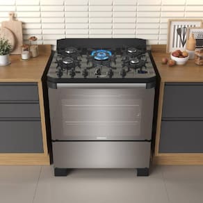 O forno se destaca pelo amplo volume de 101 litros, contando com iluminação interna e lâmpada já inclusa. A organização interna é otimizada por uma prateleira fixa e uma deslizante, garantindo segurança ao movimentar os alimentos. Para maior praticidade, o timer digital auxilia no monitoramento do tempo, enquanto o revestimento interno com tecnologia limpa fácil e acabamento fundente a pó torna a manutenção simples e rápida. Compatível com gás GLP e GN, este modelo bivolt possui classificação energética A, assegurando o melhor aproveitamento de energia para o ambiente doméstico.