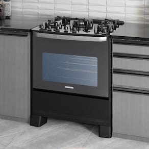 Fogão Master Grill 5 Queimadores Preto Suggar 220 V Descrição VANTAGENS DO PRODUTO Acendimento superautomático na mesa e no forno Ajuste de temperatura do forno Forno Fácil Limpeza Grill no forno Mesa de vidro temperado curva Trempes em ferro fundido com 6 apoios Queimador tripla chama Porta espelhada Capacidade forno: 90L Luz no forno - a lâmpada não acompanha o produto Controle de temperatura do forno 180C a 280C Pés elevados que facilitam a limpeza do piso Botões top control Queimadores injetados Forno com válvula de Dobradiças italianas: amortecem o fechamento da porta Proteção térmica com vidro duplo no forno 1 grade fixa e 1 grade deslizante com 3 níveis de ajuste no forno Puxador com design curvo em alumínio escovado (BR e PT) Puxador com design curvo pintado na cor prata (PRIX) Ver mais detalhes MEDIDAS DO PRODUTO ProdutoCom embalagem Altura 92,0 Largura 75,5 Profundidade 64,3 Peso 34,0 ESPECIFICAÇÕES TÉCNICAS Nome do produto: Fogão Master Grill 5 Queimadores Cor: Preto Modelo 127V: FGVMTG511PT Código EAN 127V: Modelo 220V: FGVMTG512PT Código EAN 220V: Qtd. pçs. caixa: 1