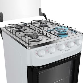 Tem ainda acendimento automático total, para acendimento prático dos queimadores da mesa e do forno.