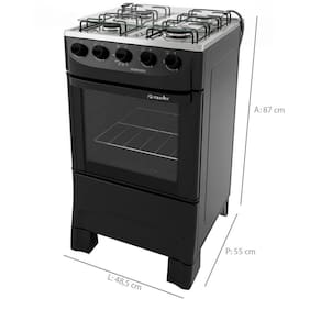 Especificações técnicas: Tensão: sem vol tagem Tipo de Gás - GLP (Conversível para GN) Potência do queimador Família - 2000W Potência do queimador Médio - 1700W Potência do queimador do forno - 1900W Volume interno do forno: 48,1 litros Classificação eficiência energética: A - na mesa e no forno