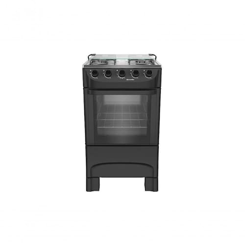 ESPECIFICAÇÕES TÉCNICAS Marca: Mueller Cor: Preto Fosco Modelo: MFI4BA Voltagem: Bivolt Tipo do Fogão: A Gás, de Piso Cor: Preto Mesa: Aço Inox Possui Tampa (tampo sobre a mesa): Não Grades de mesa (quantas): 2 Botões: Removíveis e inclinados Tipo de acendimento: Manual Queimadores: Esmaltado em Easy clean Queimador família: 2000 watts de potência Queimador médio: 1700 watts de potência Potência do queimador do forno (watts) 1900 Luz no interior do Forno: Não Acabamento do interior do forno: Total Clean Duplo forno: Não Puxador do forno: Metal Porta do Forno: De vidro Vidro interno da porta do forno é removível? Não Prateleiras do forno: Uma grade ajustável em dois níveis de altura Temperatura do forno (grau célsius): 170-290 Capacidade do Forno: 48,1 L Proteção térmica traseira: Sim Válvula de Segurança: Sim Pés Niveladores: Não Tipo de gás: GLP (Conversível para GN) Classificação Eficiência Energética: A