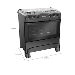 Fogão Mueller 5 Bocas MFI5BB Automático Mesa de Inox Forno 81,6 Litros