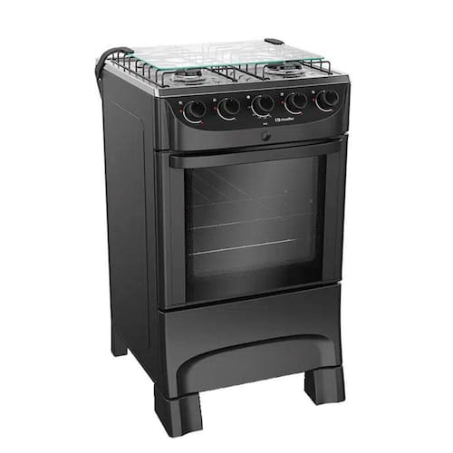 Características: Fogão Marca: Mueller Modelo: MFI4BB Origem: Nacional Quantidade de bocas: 4 Bocas Acendimento: Automático Material da mesa: Aço inox Funcionamento: GLP - A conversão para GN precisa ser adaptada, conforme consta no manual do produto -verificar se realmente tem GN- Potência dos queimadores: Família: 2000W - Médio: 1700W - Forno: 1900W Manípulos removíveis: Sim Tampa de vidro: Sim Capacidade do forno: 48,1 Litros Prateleiras do forno: 1 Prateleira ajustável Forno Autolimpante: Não Acabamento do forno: Total Clean Eficiência energética: A Grill: Não Relógio: Não Termostato: Não Bandeja coletora de resíduos: Não Forno duplo: Não Válvula de segurança no forno: Sim Sistema corta gás: Sim Possui Pés: Sim