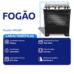 FOGÂO MUELLER MFI5BF 5 BOCAS AUTOMÁTICO MESA INOX FORNO TOTAL CLEAN