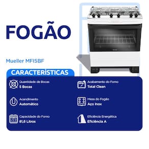 FOGÂO MUELLER MFI5BF 5 BOCAS AUTOMÁTICO MESA INOX FORNO TOTAL CLEAN