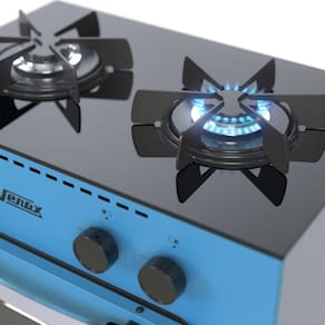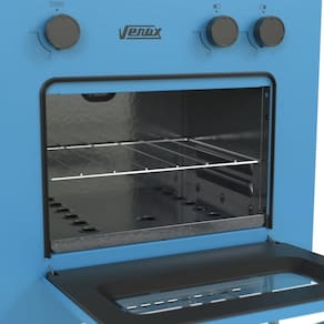 Marca: Venax Modelo: Mini Cook Ref.: 16248 Cor: Azul Volume do Forno: 22 L Tipo: Fogão Portátil Acendimento: Manual Queimadores: 2 Médios Trempe dos Queimadores: Esmaltada Mesa Queimadores: Vidro Tampa da Mesa: Não Botões: Removíveis Válvula de Segurança: Não Luz no Forno: Não Prateleiras no Forno: Uma Fixa Revestimento Forno: Easy Clean Temperatura: 2 Posições Função Grill: Não Timer Grill: Não Timer Gás: Não Espeto Giratório: Não Bandeja Coletora de Resíduos: Não Porta Removível: Não Porta do Forno: Almofada com Visor Incolor Vidro Duplo na Porta: Não Puxador da Porta: Alumínio Entrada de Gás: Uma entrada (lado direito visto de frente) Alimentação: Gás GLP (A conversão para Gás Natural não é coberta pela garantia) Classificação Energética: Isento Etiquetas: Isento Potência Queimador do Forno: 1,35kW Potência Queimador: 1,35kW (queim. médio)