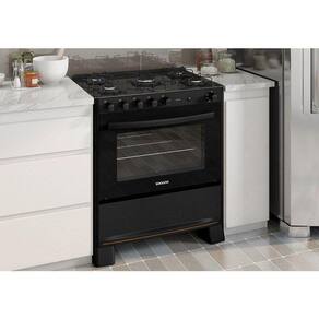 Com acendimento automático total na mesa e no forno, este fogão oferece praticidade incomparável na cozinha. Seu forno possui capacidade para 90 litros e conta com revestimento para facilitar a limpeza e simplificar suas tarefas diárias. Suas trempes individuais em aço esmaltado, com seis pontos de apoio, garantem estabilidade e segurança ao cozinhar.