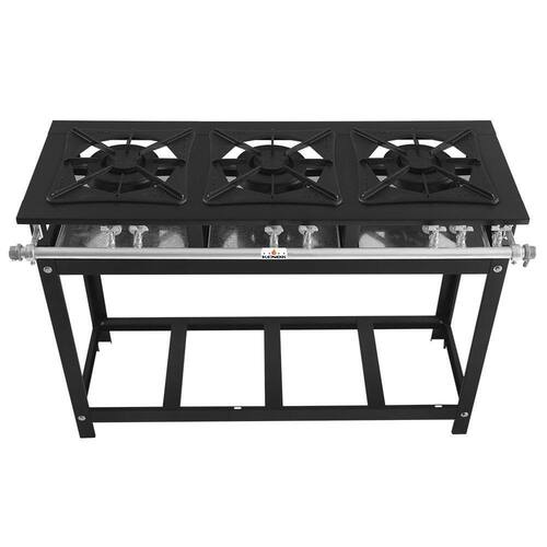 O fogão industrial 3 bocas é ideal para quem precisa de um fogão potente e de alta performance em sua cozinha industrial e profissional. Pode ser utilizado em restaurantes, lanchonetes, padarias, espaços de festa, chácaras, sítios, acampamentos e muitos outros locais que necessitem de um equipamento eficiente para cozinhar e preparar os alimentos com qualidade e sabor. Este fogão 3 bocas a gás é confeccionado em aço carbono (chapa 20) com pintura epóxi, garantindo muito mais qualidade e durabilidade ao produto. Sua grelha 40x40 é feita em ferro fundido, proporcionando máxima resistência, além de possibilitar o uso de recipientes a partir de 110 mm. Conta com 3 queimadores (bocas) duplos e uma bandeja coletora de resíduos em cada queimador, para melhor utilização e higiene do fogão 3 bocas.