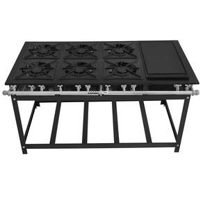 O fogão 6 bocas duplas industrial é a melhor escolha para quem precisa equipar a sua cozinha profissional com um equipamento eficiente e de alto desempenho. É indicado para ser utilizado em restaurantes, bares, lanchonetes, hambuguerias, espaços de festas, chácaras, sítios, escolas, igrejas e muitos outros locais que necessitem de um fogão potente! Além de poder preparar diversos pratos saborosos com esse fogão, é possível grelhar carnes, frangos e legumes, já que possui uma bifeteira acoplada em sua estrutura. Este fogão industrial a gás é confeccionado em aço carbono (chapa 20) com pintura epóxi, garantindo máxima qualidade e durabilidade ao produto. Suas grelhas 40x40 são feitas em ferro fundido, proporcionando máxima resistência, além de possibilitar o uso de recipientes a partir de 110 mm. Conta com 6 queimadores duplos e uma bandeja coletora de resíduos em cada queimador, para melhor utilização e higiene do fogão 6 bocas a gás.