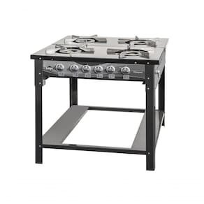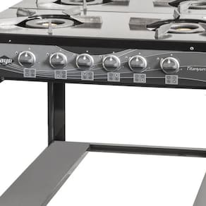 * As peças do fogão (queimadores e trempes) vem numa caixa dentro da embalagem juntamente com com parafusos e porcas para montagem dos pés (produto desmontado).