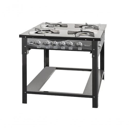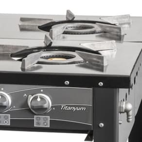 02 Queimadores traseiros de ferro fundido, com chama dupla.