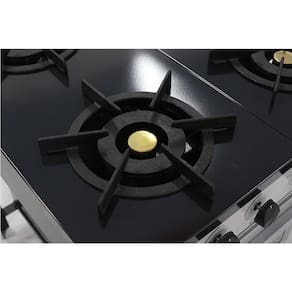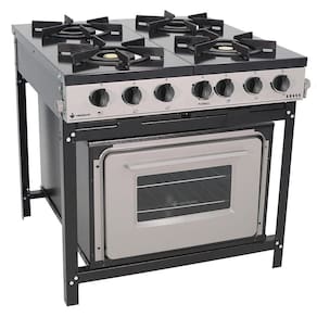 O Fogão Industrial Bravo conta com forno, 4 bocas e mesa esmaltada a fogo com sistema Easy Clean, facilitando a limpeza. Conta com sistema de gás GLP de baixa pressão e queimadores de alto rendimento fabricados em ferro fundido, possuindo potência de 3.636 kcal/h nas chamas triplas frontais, 3.021kcal/h nas chamas duplas traseiras e consumo de gás de 1,572kg/h.
