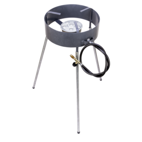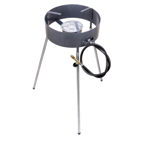 Completo com 3 pés resistentes em aço galvanizado, mangueira e registro controlador de chama.